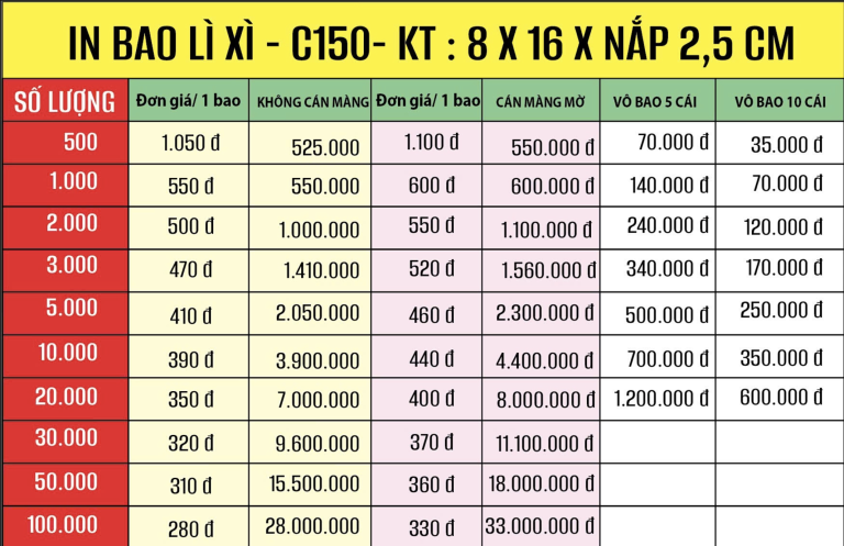 In bao lì xì tại XƯỞNG IN VỚI GIÁ CHỈ TỪ 550.000Đ