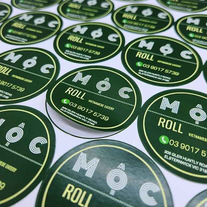 Decal, sticker là nhãn dán in sẵn có lớp keo phía sau, dùng để dán lên sản phẩm, bao bì hoặc các bề mặt quảng bá. Đây là công cụ nhận diện thương hiệu hiệu quả, đồng thời giúp sản phẩm trở nên chuyên nghiệp và nổi bật hơn.