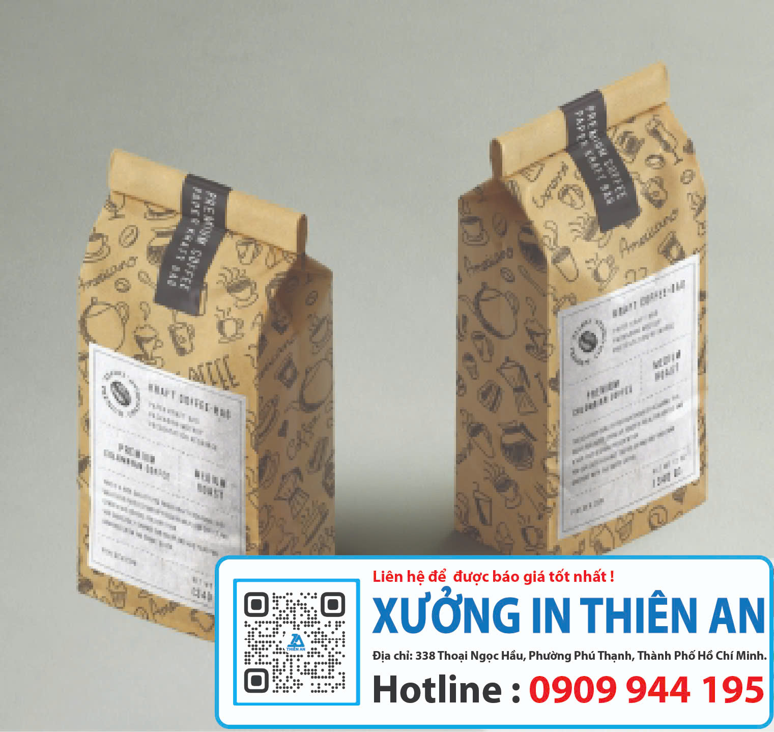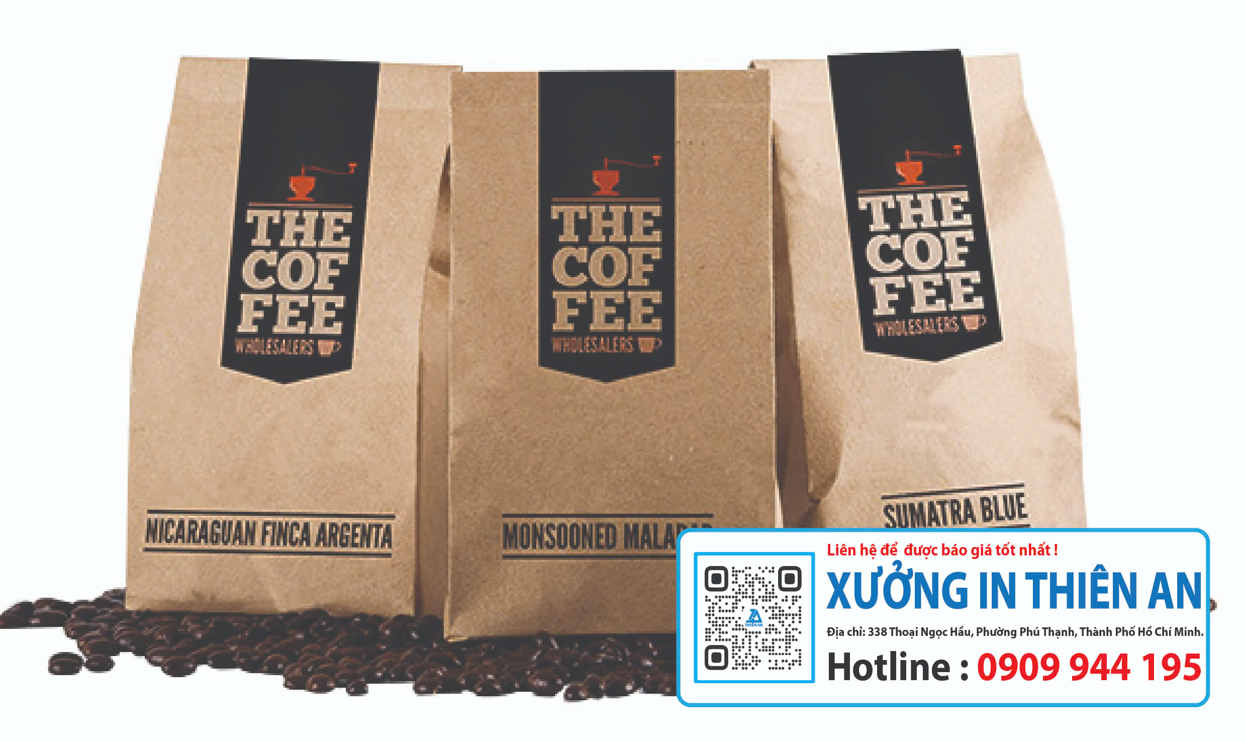 Túi cà phê không chỉ đơn thuần là bao bì chứa đựng, mà còn là công cụ marketing hiệu quả giúp truyền tải thông điệp thương hiệu, tạo ấn tượng mạnh mẽ với khách hàng. Tại Công Ty In Ấn Bao Bì Thiên An, chúng tôi chuyên in túi cà phê giấy Kraft với chất lượng in sắc nét, thiết kế đẹp mắt và giá cả cạnh tranh.