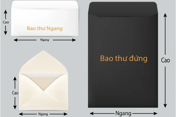 – Kích thước bao thư A4 là 23x16cm dùng để đựng tài liệu , hợp đồng, thư mời…
